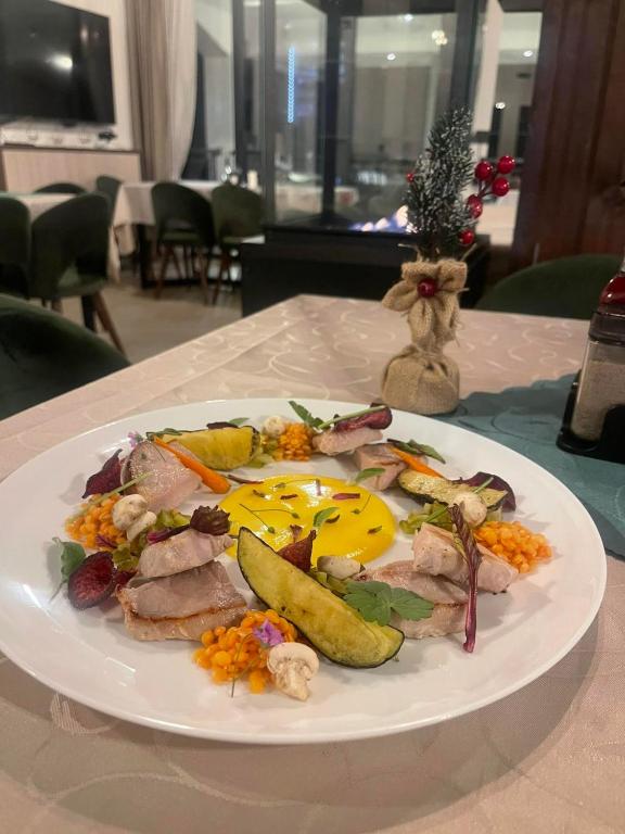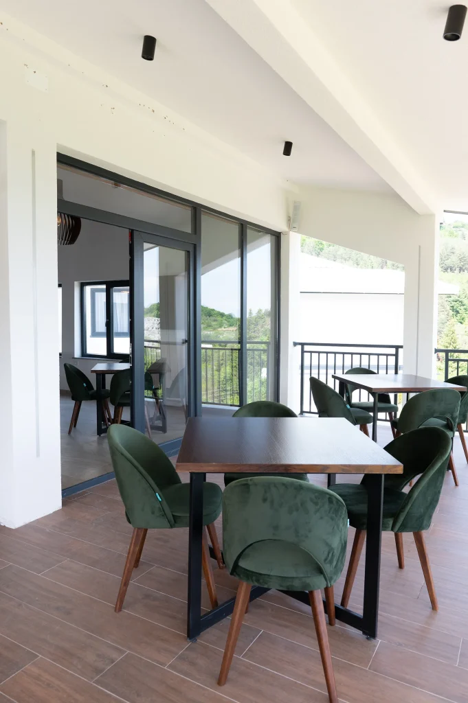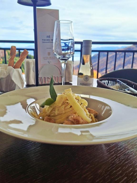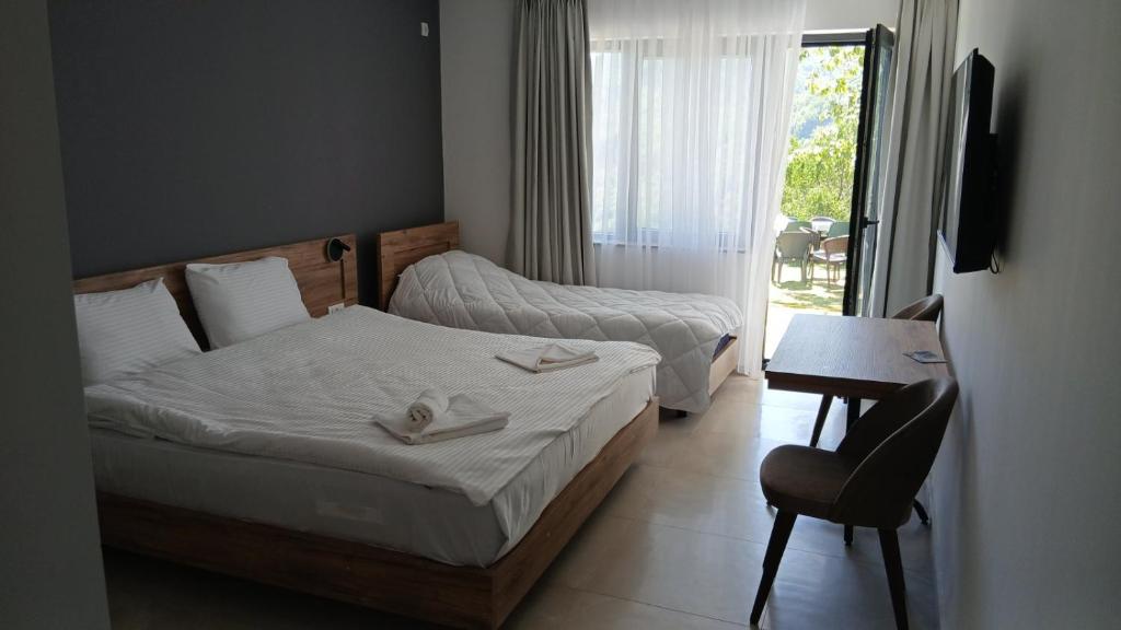 Располага со 22 соби (68 легла), ресторан со традиционална кујна и отворен базен.